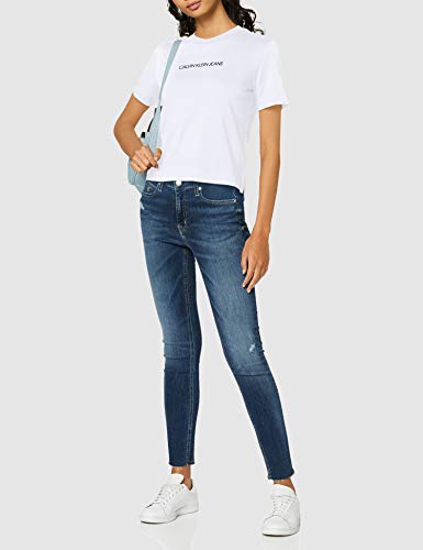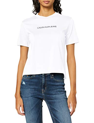 Calvin Klein Shrunken Institutional Logo tee Camiseta, Blanco (Bright White Yaf), L para Mujer