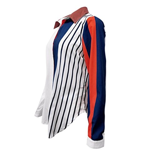 SHOBDW Moda para Mujer Otoño Patchwork de Manga Larga Color botón a Rayas Casual Camisetas Tops Blusa(Blanco,M)