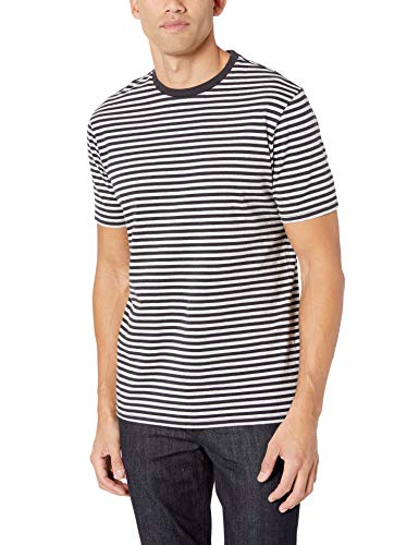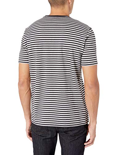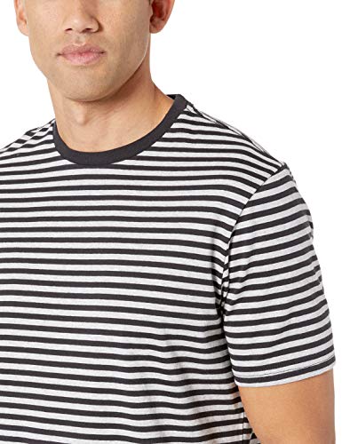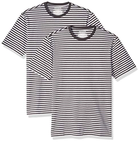 Amazon Essentials - Pack de 2 camisetas de manga corta con cuello redondo y diseño a rayas para hombre, Negro/Gris jaspeado claro, US M (EU M)