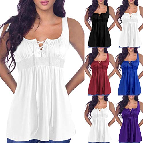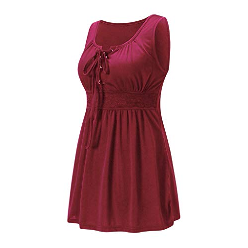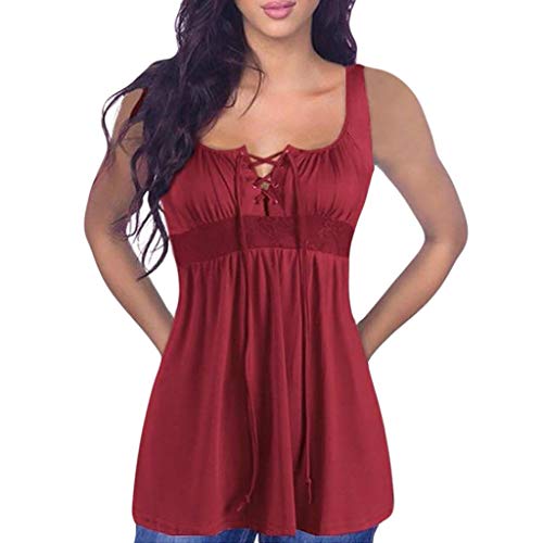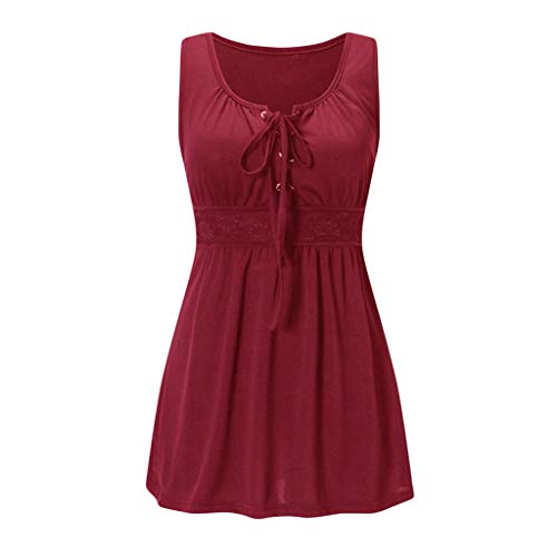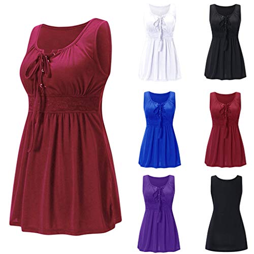 Camiseta Sin Mangas Mujer SHOBDW 2020 Nuevo Playa de Verano Deporte Camisetas Mujer Tirantes Baratas Chaleco con Cordones Camiseta Blusa Camisetas Sin Mangas para Mujer Tallas Grandes(Vino,5XL)