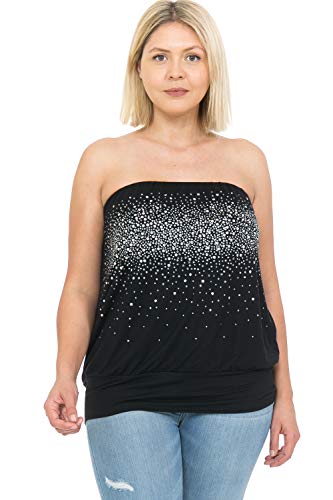 LEEBE Mujer Talla Grande - Top de Tubo Tachonada (1XL-5XL) (4XL (58-60), Negro)