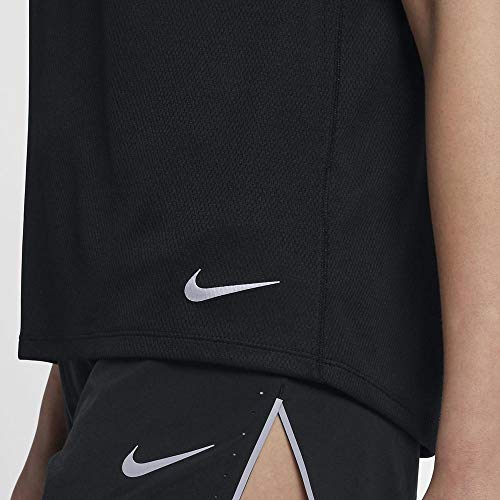 NIKE W NK Run Top SS Camiseta de Manga Corta, Mujer, Black/Black/Reflective silv, L