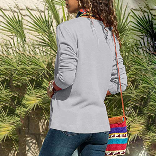 Woolen Bloom Jersey Punto Mujer Invierno Jersey Rayas Camiseta Manga Larga Sueter Basico Suelto Jerseys Camisa Tops Pull-Over Suéter Mujer Primavera Otoño Gris Oscuro