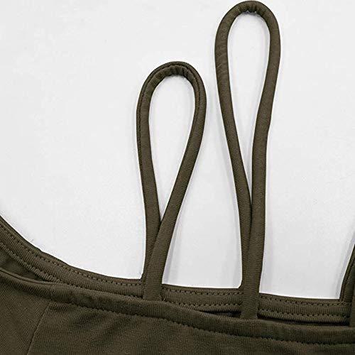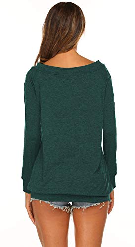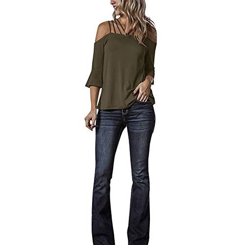 Decai Verano Camisas de Hombro Frío Blusas Tops Chaleco de Manga Corta Túnica Tops Casual Camiseta de Tirantes para Mujer Señoras Blusa Sólida Correa Suelta Columpios Verde 38-40 EU