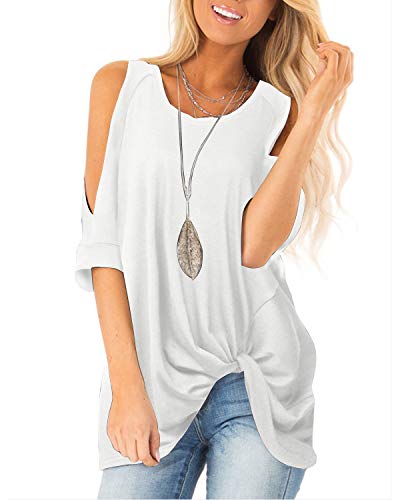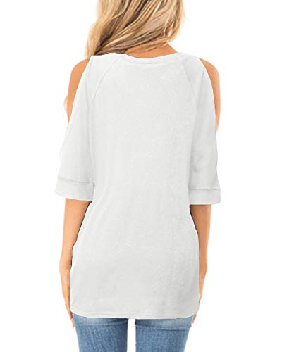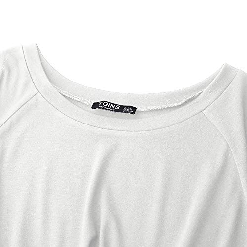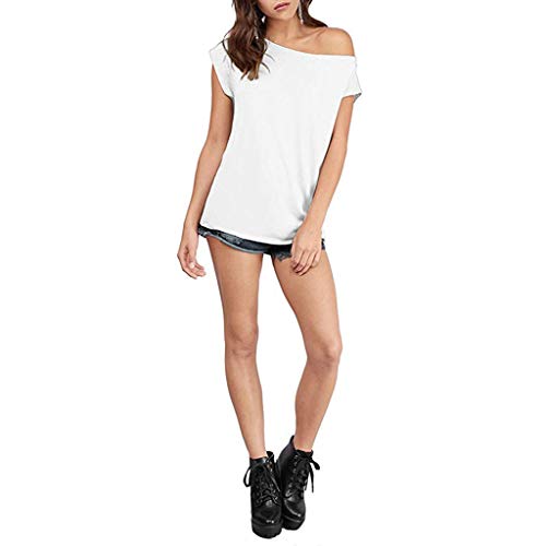 - - YOINS - Blusa de manga corta para mujer con hombros descubiertos, sexy, elegante y a la moda. Característica: blusa de hombro descubierto, hombros descubiertos, blusa de cuello redondo de ajuste holgado, blusa lisa para mujer, camiseta de manga corta de ajuste holgado, camisetas de cuello redondo cruzado, blusa de mujer única para mujeres, señoras y niñas.