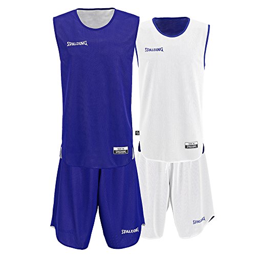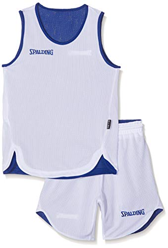 Spalding Doubleface Kids Set, Conjunto reversible camiseta y pantalones de baloncesto para Unisex-Niños, Azul/Blanco (Royal/White), XS(152)