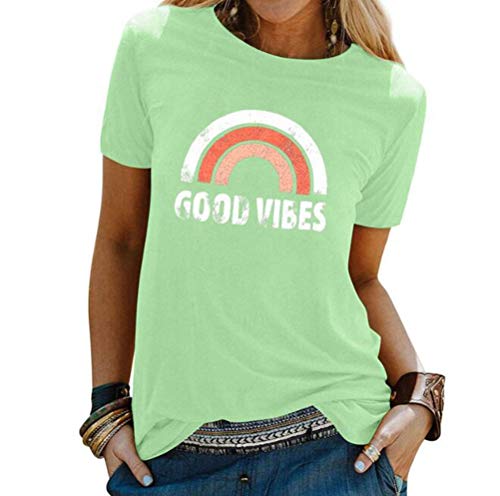 Tbagem-Yjr La Letra del Verano De Moda Femenina Cuello Redondo De Manga Corta Impresa Camiseta (Color : E, Size : L)