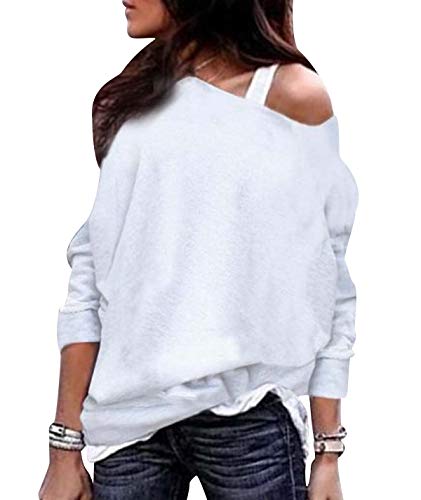 Sudaderas Mujer Sudadera Hombros Descubiertos Chica Oversize Sudaderas Lisas sin Capucha Basicas Casual Anchas Jersey Camisetas Manga Larga Mujer Tallas Grandes Deportivas Bonitas Simples Blanco S