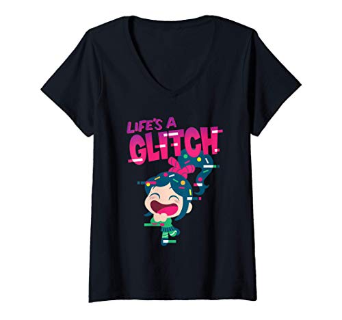 Mujer Disney Ralph Breaks the Internet Vanellope Glitch Camiseta Cuello V
