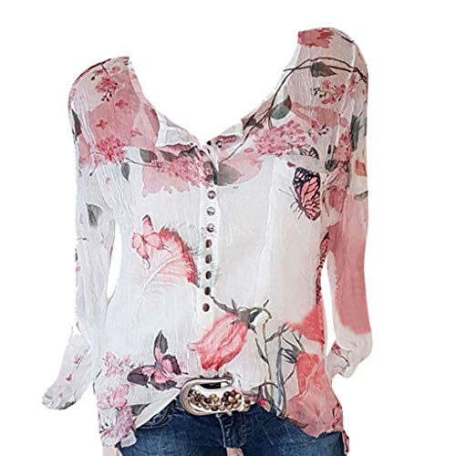 POLP Blusas para Mujer Elegantes Verano Fiesta Sexy Camisetas Manga Larga Mujer Tallas Grandes Originales Baratas Blusa de Gasa Larga Escote en V Primavera Tops Shirt 2019