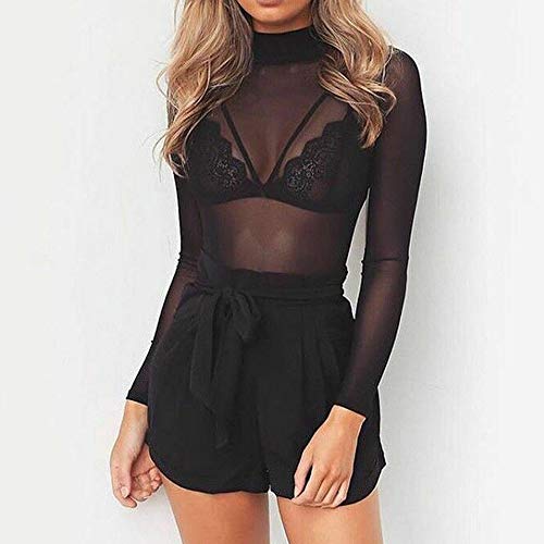 - ?Loalirando top camiseta sexy de manga larga para mujer, con diseño transparente y cuello redondo, es la mejor opción para fiesta y cóctel