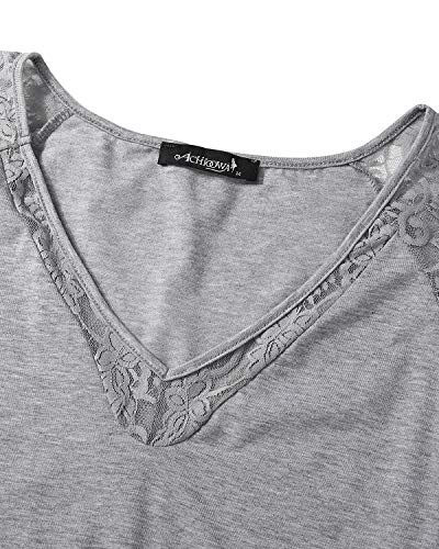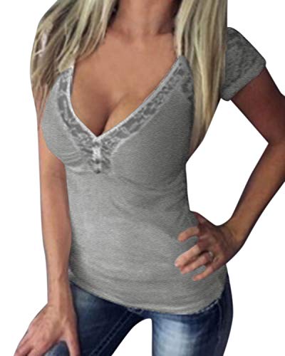 ACHIOOWA Camiseta de Mujer Cuello V Tops Sexy Elegante Blusa de Manga Corta T-Shirt Tramo Casual Gris XL