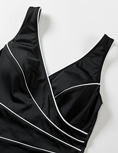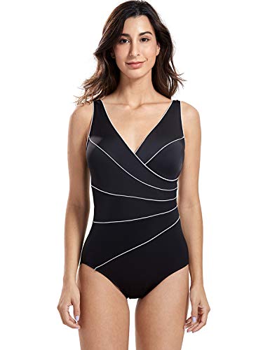 DELIMIRA - BaƱador a Rayas Escote en V Traje de BaƱo de Una Pieza para Mujer Negro 54