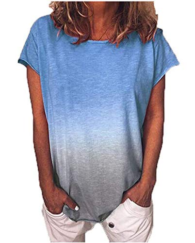 Yutila Mujer Manga Corta Camiseta Tops Verano Casual Degradado T-Shirt Camisa