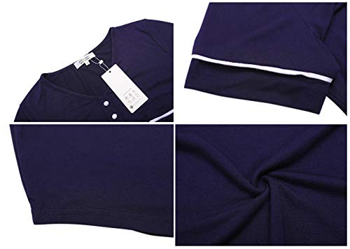 - 【Características】-- Camisón mujer de cuello camisero, escote en V, manga 3/4, cierre de botones y un bolsillo en la parte delantero. Largura por encima de rodilla.