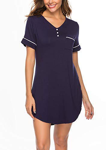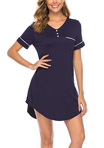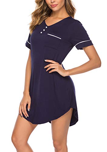 UMIPUBO Camisón de algodón para Mujer Manga Corta Camisón con Estampado Lindo Ropa de Dormir Suave con Bolsillo Ropa de Dormir de Verano Pijamas