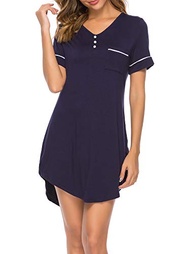 ABirdon Camisón Mujer de Algodón para Mujer V Manga Corta Camisón Loungewear S-XXL