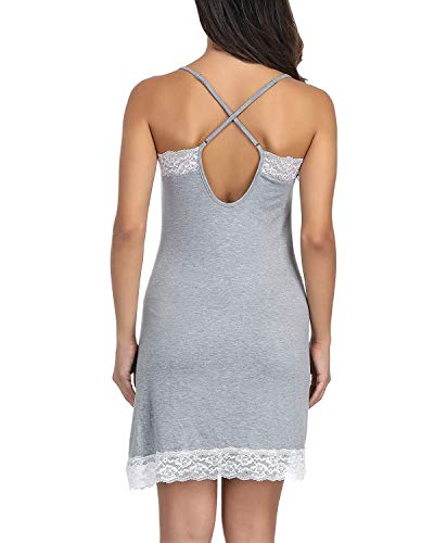 Camisón de algodón Camisón con Cordones nocturnos Vestido Camisero sin Mangas Talla XL Gris