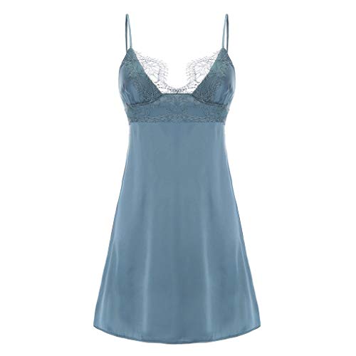 Pijamas Calentamiento Nocturno Camisón Camisero De Sche Ropa para El Hogar Calzado Basic Nocturno para Damas De Verano Perspectiva Sche Falda De Encaje Camisa Azul Sedoso (Color Azul Tamaño M Ropa