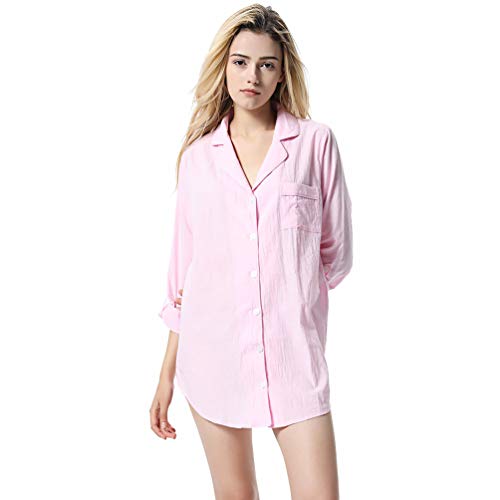 TieNew Elegante Camisón para Mujer, Camisón de Algodón Cuello Camisero con Cierre Mediante Botones con Bolsillo Delantero Pijama Corto de Una Pieza Ropa de Dormir Camisones de Noche para Mujer