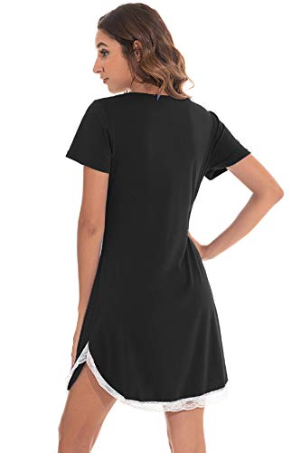 - ♛♛【Material agradable para la piel】El camisón de mujer está hecho de material elástico: 35% algodón, 65% fibra de poliéster. Suave, cómodo, ligero y agradable para la piel, es muy adecuado para dormir y no te hará sentir congestionado.