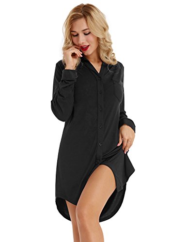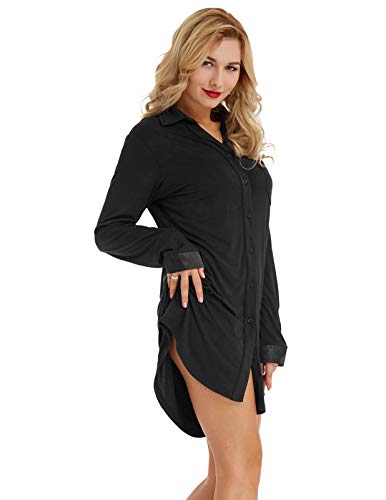Zexxxy Ropa De Dormir para Mujer Camisón Abotonado Vestido Camisón Talla L Negro