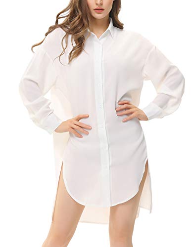 - Diseño de boyfriend: este camisón tiene un diseño clásico de solapa, fácil de poner y quitar en estilo de botón, diseño holgado, diseño asimétrico con parte delantera corta y parte trasera larga, aberturas laterales y un diseño característico con mangas enrolladas, adecuado para el uso diario.
