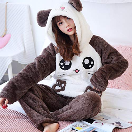 Pijamas Mujer Camisón Conjunto De Pijama De Franela con Capucha De Manga Larga Gruesa Y Cálida De Invierno para Mujer, Ropa De Dormir De Terciopelo Coral Bonito, Ropa De Casa XXL 2018