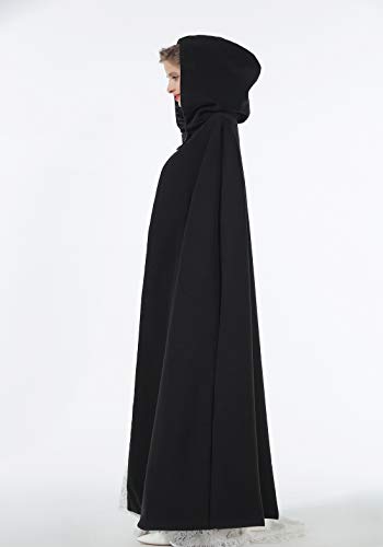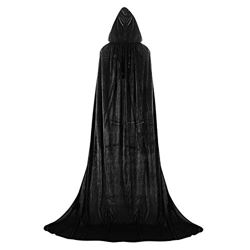Proumhang Negro Largo Capa con Capucha Terciopelo Disfraz de Halloween para Mujeres Hombres Halloween Carnaval Navidad Fiesta Disfraces