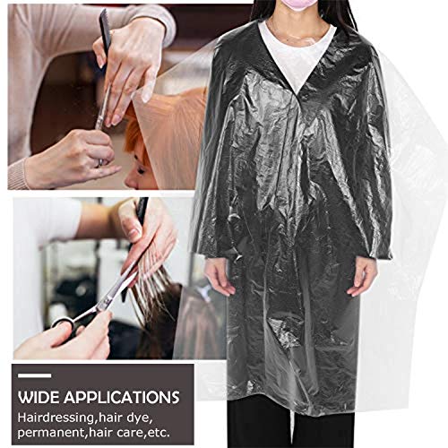 - Capas de corte de pelo desechables, simple y conveniente, seguro e higiénico.Proteger su ropa y piel de pelo, pelo, Perm y otros productos para el cabello.