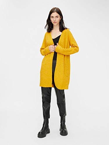 PIECES PCELLEN LS Long Knit Cardigan Noos Chaqueta de Punto, Nugget Gold, XS para Mujer