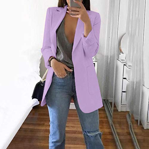 Trajes Mujer Invierno Otoño 2019 SHOBDW Liquidación Venta Abrigos Mujer Elegantes Color Sólido Chaqueta Mujer Solapa Cardigan Mujer Largos Rebajas Casual Blazers Mujer Talla Grande(Morado,S)