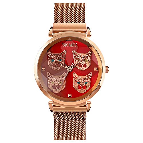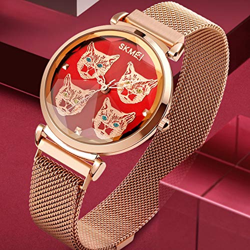 YIBOKANG Moda De Moda Temperamento Estéreo Espejo Espejo Catálogos Catálogos Magnético Hebilla Impermeable Cuarzo Reloj Creativo Casual Regalo Moda Reloj De Moda (Color : Rojo)