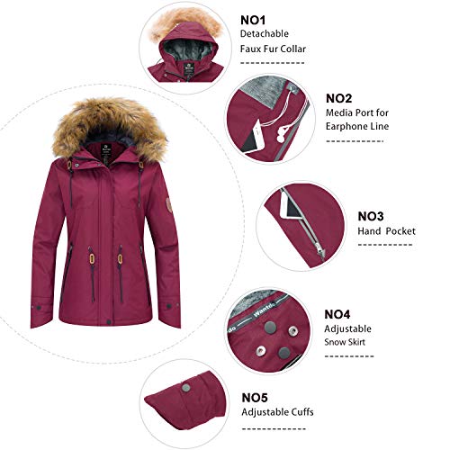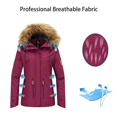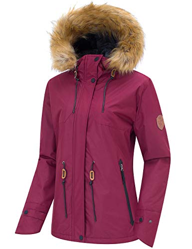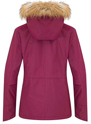Wantdo Chaqueta de Esquí Aislante Impermeable Chaqueta de Esquí Aislante Impermeable Parka Cálida con Capucha Integrada Cazadora Trabajo Viaje Acampar para Mujer Rojo Vino Medium
