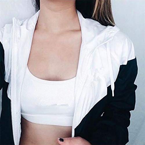 SHOBDW Sudadera con Capucha Mujer Otoño Invierno Tops de Manga Larga Patchwork Skinsuits Finos Sudadera con Capucha a Rayas Bolsillos con Cremallera Escudo(Negro,XL)