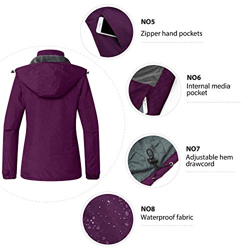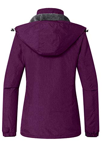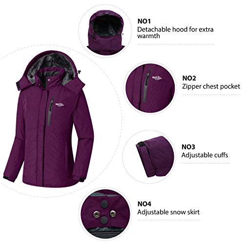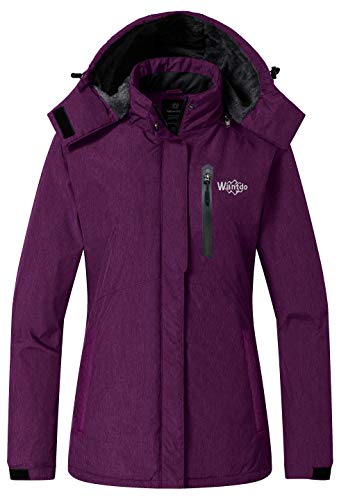 Wantdo Chaqueta de Esquí Aislante Impermeable Parka Cálida con Capucha Ajustable Extraíble Cazadora Trabajo Viaje Acampar Chaqueta de Esquí Aislante Impermeable para Mujer Púrpura Large
