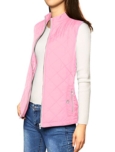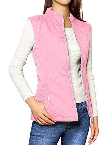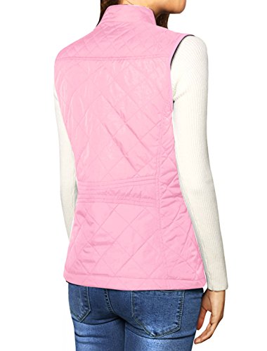 Allegra K Chaleco Acolchado para Mujer Cuello Alto Cremallera Frontal Bolsillos Inclinados Rosa S