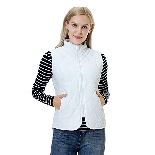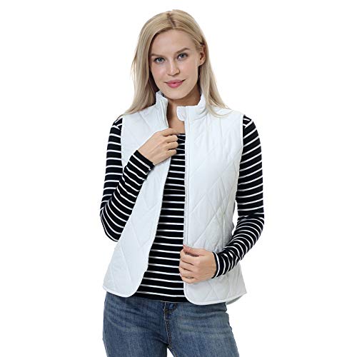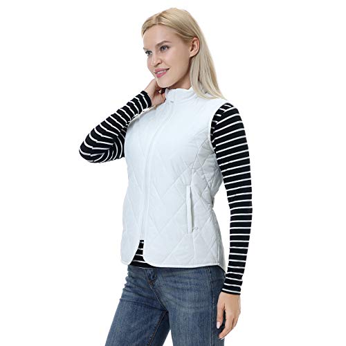DISHANG Chaleco para Mujer de Invierno, Liviano, Casual, con Bolsillos, para Deportes al Aire Libre, Chaleco Aislante (Blanco, M)