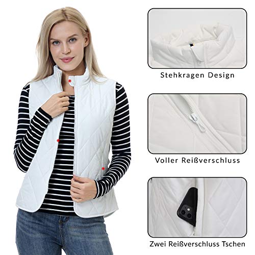 BEROY Chaleco de mujer con cuello alto, sin mangas, acolchado, con cremallera, chaqueta de invierno cálida, ultraligero, para exteriores A1/blanco. XL