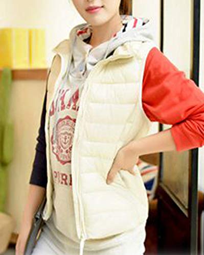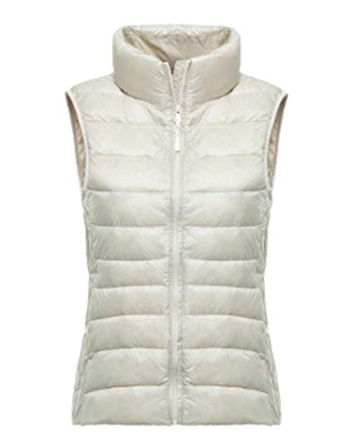 Mujer Collar de pie Chaleco Portátil de Plumón Ligero Acolchado Invierno Cálido Sin Mangas Abajo Chaqueta 3XL Blanco