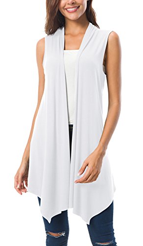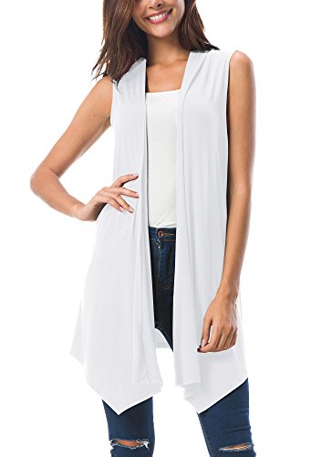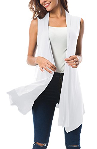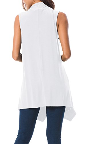 Urban GoCo Mujeres Sin Mangas Drapeado Cárdigan Chaleco (Small, Blanco)