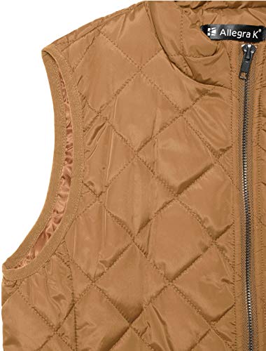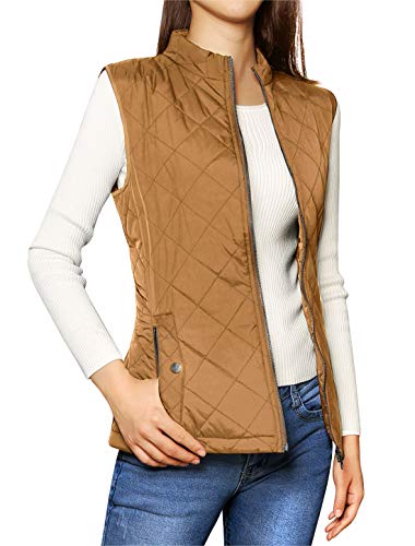 Allegra K Chaleco Acolchado para Mujer Cuello Alto Cremallera Frontal Bolsillos Inclinados Marrón Saddle M
