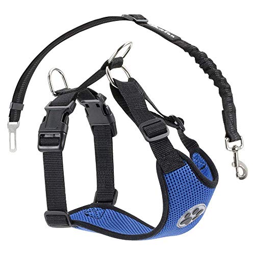 - Mantener Seguro y Cómodo --- El arnés envuelve alrededor del cuerpo del perro y el cuello que podría ser en lugar de un collar. Las correas se aprietan con seguridad para que los perros no puedan recorrer el coche para evitar que los perros salten al asiento delantero, pero no tiran contra ellos.