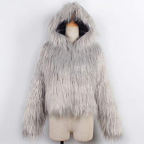 DEELIN Mujeres CáLidas De Piel SintéTica Abrigo Chaqueta De Lana Capa De Invierno SóLido Color SeñOras Encapuchado Abrigo De Abrigo(S-3XL) (XL, Gris)