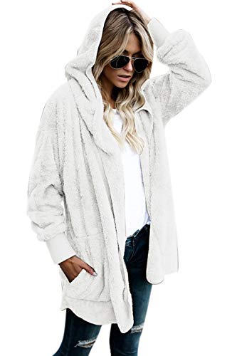 Zilcremo Mujer Lana Chaqueta Cárdigan con Capucha Frente Abierto Abrigo Fleece de Piel Sintética Invierno Beige S