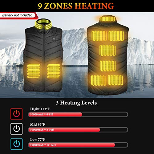 - 9 zonas de calefacción y 3 niveles de temperatura: ? 9 zonas de calefacción integradas y 3 niveles de calefacción. (Alto: 113 F, mediano: 95 F, bajo: 77 F). Hemos diseñado 9 zonas de calefacción para mantener las 4 zonas centrales del cuerpo calientes y saludables. Con 3 niveles de calefacción, puedes elegir mejor la temperatura que se adapte a ti según la ocasión. Los elementos calefactores de fibra de carbono importados de alta calidad se utilizan para mantener una salida de calor constante.