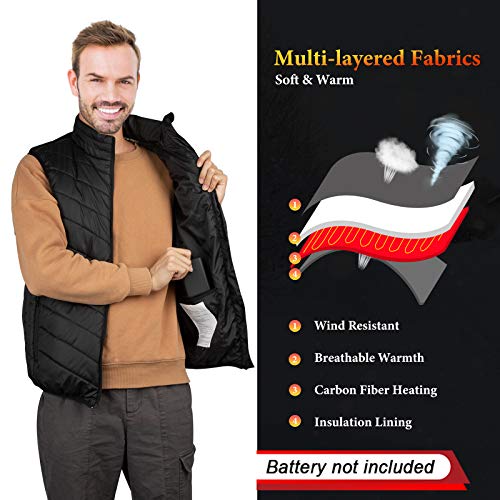 - Chaleco calefactado de seguridad: el chaleco térmico está hecho de tela de alta calidad y fibra de carbono caliente. Dispone de un módulo de protección térmica integrado. En caso de sobrecalentamiento, se detendrá el calentamiento hasta que el calor vuelva a la temperatura estándar, lo que le da tranquilidad. Alambre calefactor de fibra de carbono recién actualizado, el chaleco es lavable y lavable a máquina.