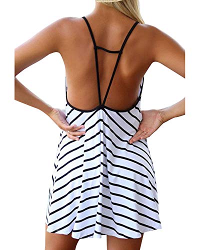 - Características: sin mangas, mini vestido con tirantes, escote en V profundo, tirantes, tirantes finos, camisetas estampadas, chaleco oscilante