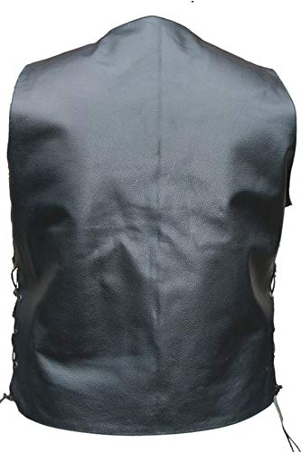- Con adornos de latón real para mayor durabilidad: 4 broches para cerrar el chaleco, cordones laterales de ajuste y aspecto de súper motero.