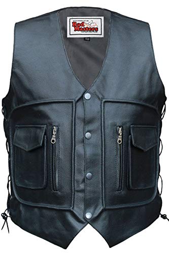 Leatherick SOA Chaleco de Motociclista de Cuero Genuino para Hombre para Montar y Corte de Moda de Estilo Chaleco, con Bolsillos Profundos (2XL - EUR60)